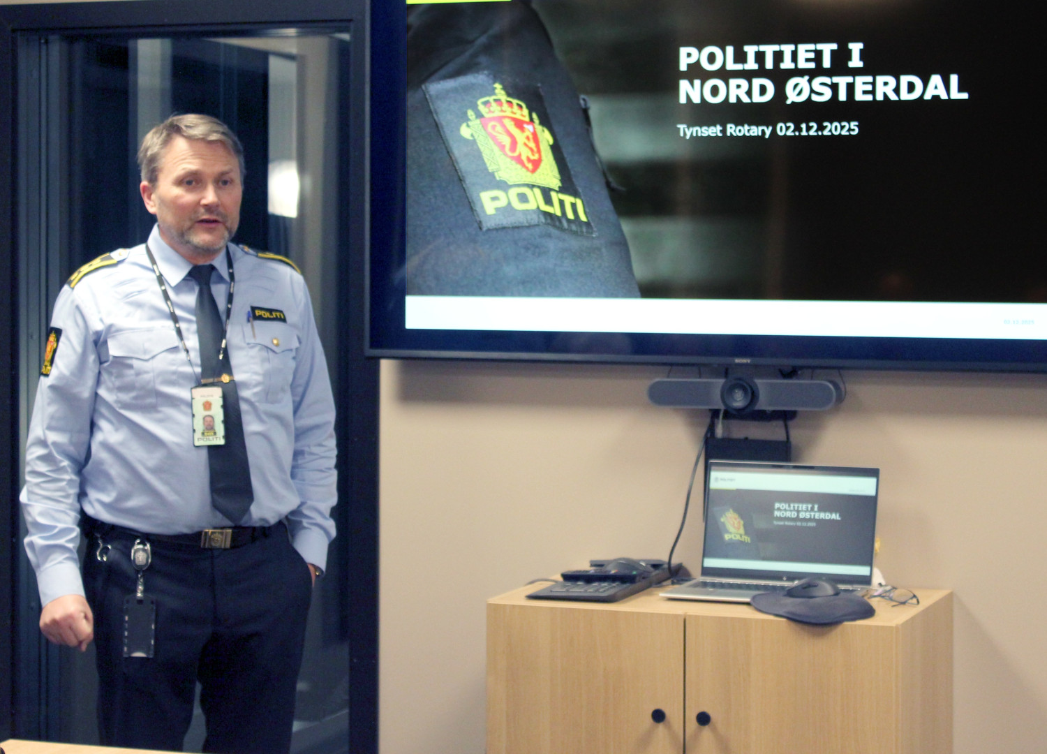 Rotary fikk omvisning i Norges kanskje fineste politistasjon på Tynset, et moderne signalbygg for hele Nord-Østerdal. Stasjonssjef Hilmarsen delte status om beredskap, ungdomsutfordringer og politiets arbeid i regionen.