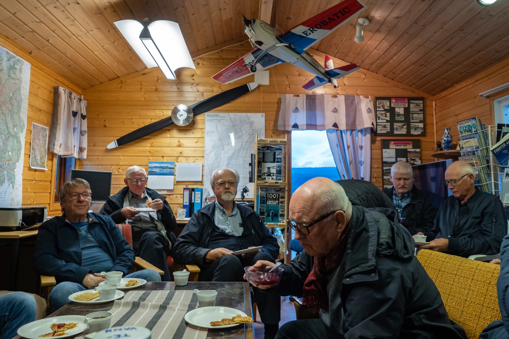 Innimellom erstattes møtene med bedriftsbesøk, ekskursjoner og turer, som her hvor vi er på besøk hos Tynset Flyklubb på Tynset Flyplass.